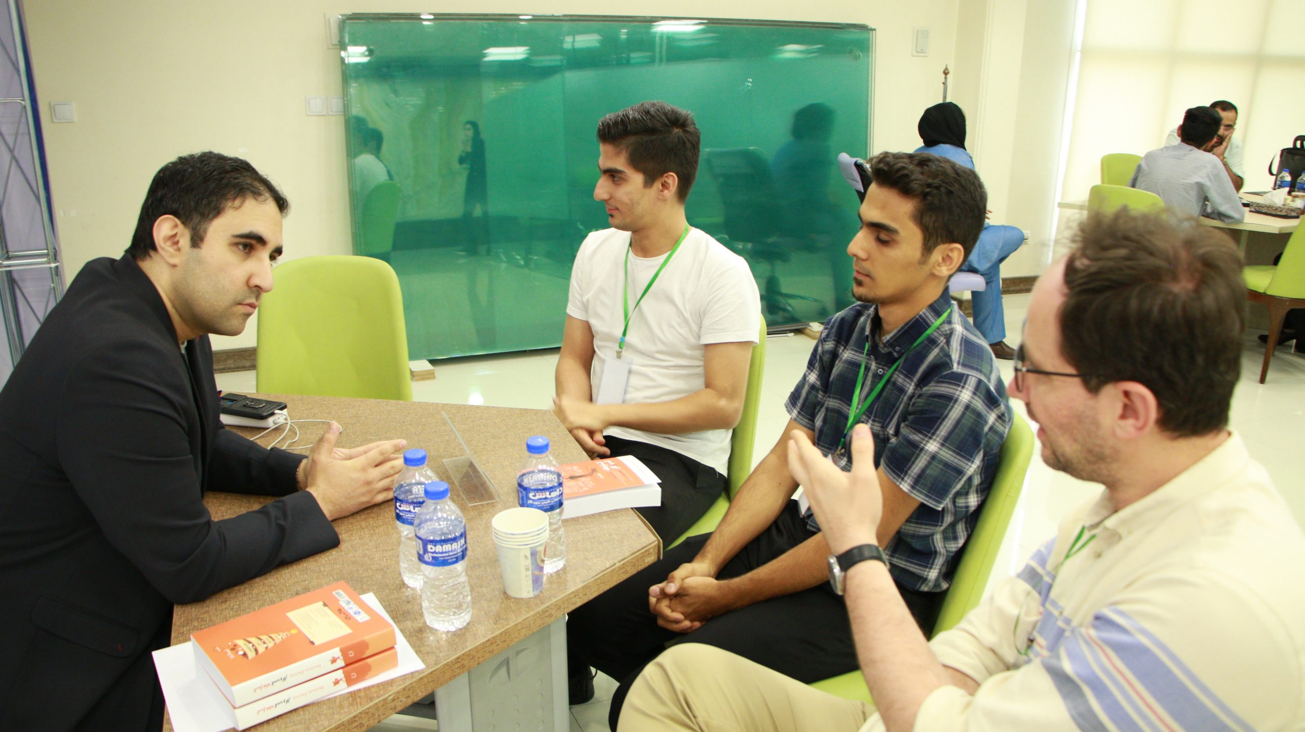 در ادامه جناب آقای حسین یکتا، عضو شورای مرکزی قرارگاه عمار، در جمع شرکت در یک گردهمایی دوستانه به گفتگوی آزاد با یکدیگر پرداخته و ضمن شناخت بیشتر یکدیگر، به معرفی طرح های خود و تبادل نظر با هم پرداختند دانشجویان نوآور حضور یافتند و پس از سخنرانی ایشان و اتمام این بخش از برنامه، دانشجویان با شرکت در یک گردهمایی دوستانه به گفتگوی آزاد با یکدیگر پرداخته و ضمن شناخت بیشتر یکدیگر، به معرفی طرحهای خود و تبادل نظر با هم پرداختند