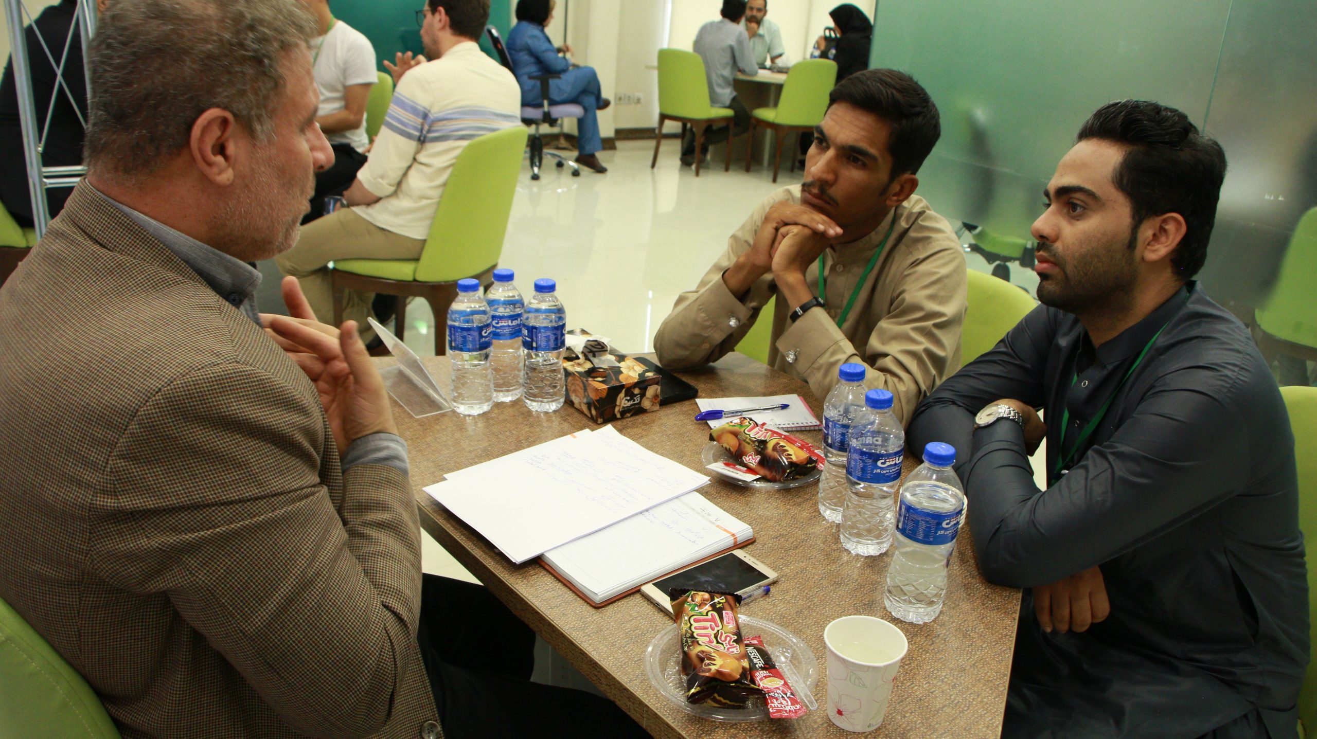 همزمان با ارائه گروه های برتر و داوری این طرح ها، برای سایر تیم ها امکانی فراهم شد تا در جلسه ای با واحد مسئولیت اجتماعی بنیاد علوی و بانک قرض الحسنه مهر ایران با هدف بررسی فرصت های همکاری دانشجویان با این دو موسسه شرکت نمایند. در این جلسات ابتدا نمایندگان مسائل و مشکلات موسسات را مطرح نمونده و جهت همکاری با دانشجویان برای حل این مشکالت و واگذاری پروژههای اجتماعی به ایشان، اعالم آمادگی نمودند.