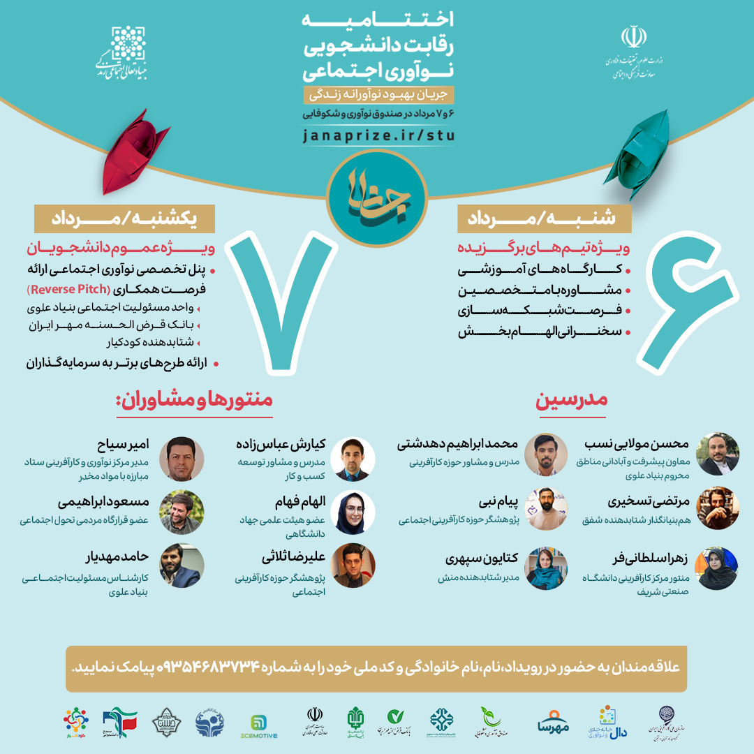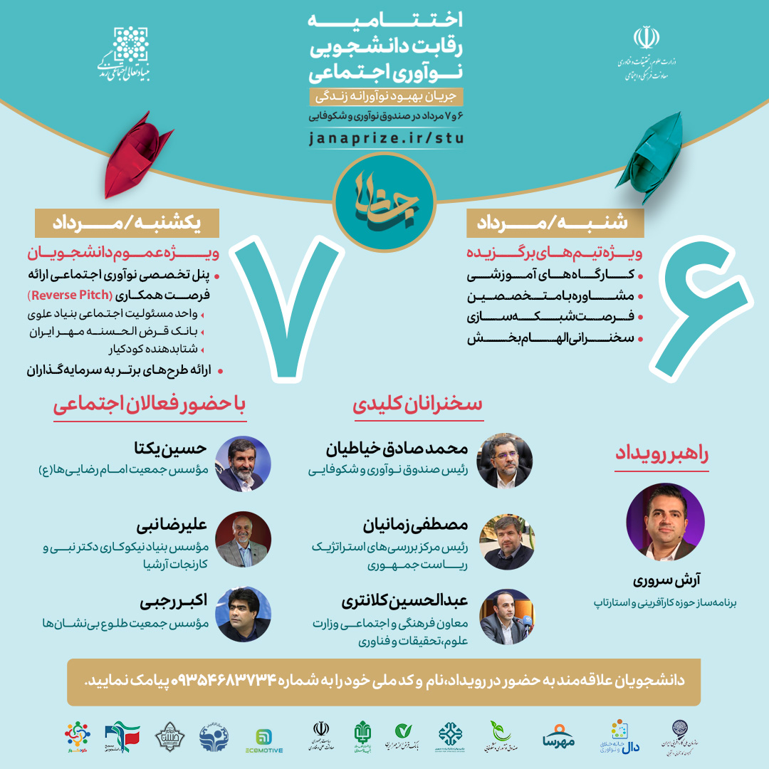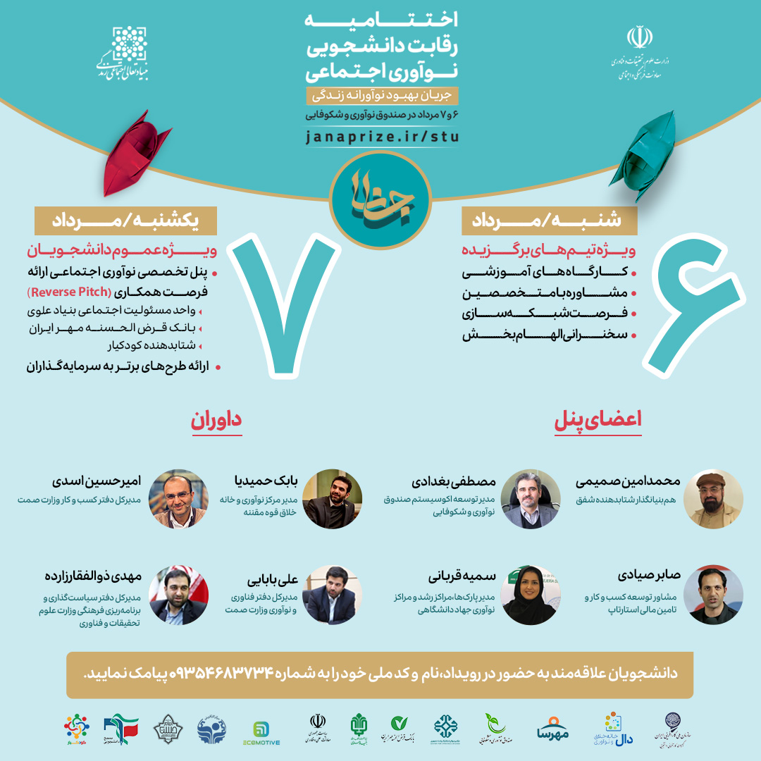 جانا دانشجویی در دو روز ۶ و ۷ مرداد ماه سال ۱۴۰۳ در محل صندوق نوآوری و شکوفایی برگزار شد
