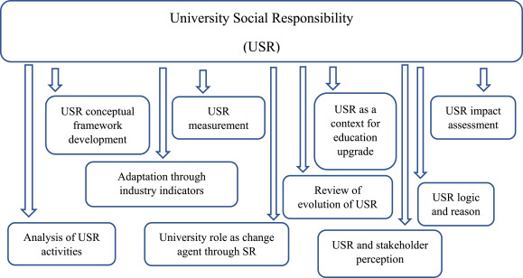 اساس این مسئولیت، مسئولیت‌پذیری دانشگاه در برابر جامعه است. دانشگاه‌ها با مشارکت اساتید، دانشجویان و مدیران می‌توانند محیطی برای آینده‌سازی ایجاد کنند. USR بر این باور است که دانشگاه‌ها باید در خدمات اجتماعی، توسعه اقتصادی، حفاظت از محیط زیست و رشد جامعه جهانی نقش فعال داشته باشند. این مسئولیت شامل مدیریت و بهره‌برداری مسئولانه از دانش، تأثیرگذاری در آموزش و پژوهش و تعامل با جامعه و محیط کسب‌وکار می‌شود.